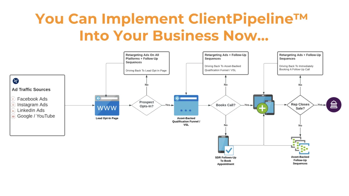 The process to get started is easy. Simply book a strategy session, and we'll take you through everything step-by-step. We'll review your existing lead generation strategy, identify where improvements can be made, and put together a custom plan to integrate ClientPipeline™ into your operations effectively.